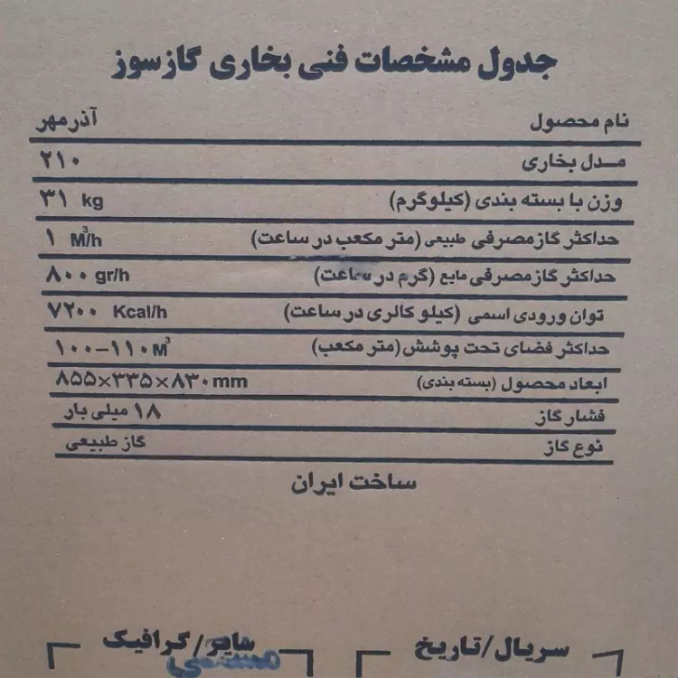 بخاری گازی ایران شرق مدل 21 هزار مدل 210