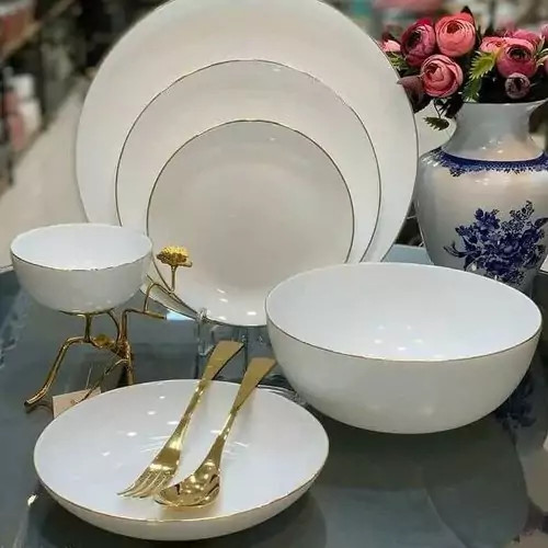 سرویس غذاخوری آرکوپال 26 پارچه گرد سفید لب طلا دینو (دایره غذاخوری )