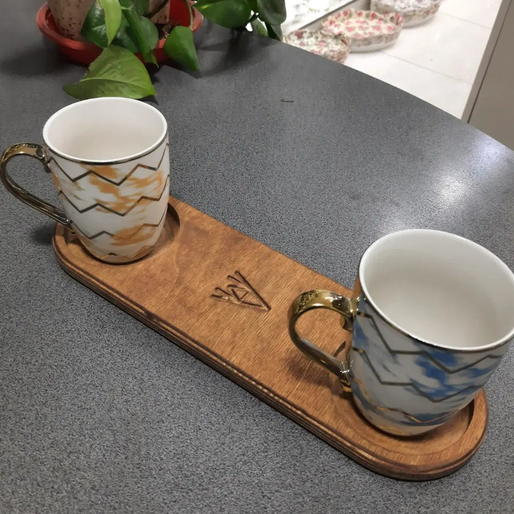 زیر لیوانی چوبی دو خانه ، چوب روس با کیفییت قابل شستشو