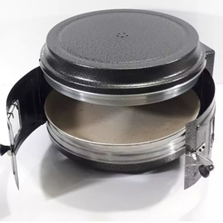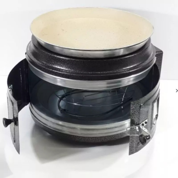 این دستگاه دارای توری استیل و یک تابه گرانیتی به قطر 40 سانتیمتر می باشد.