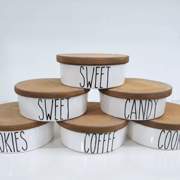 کندی سرامیکی درب چوبی کوکی ، کافی ، سویفت