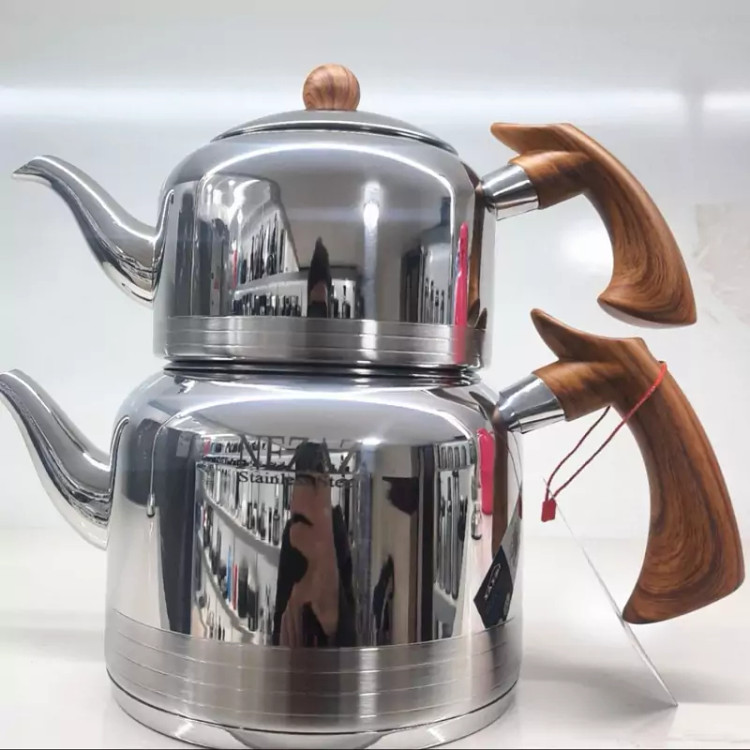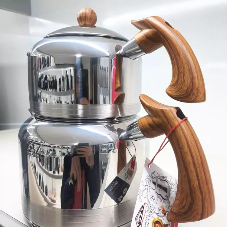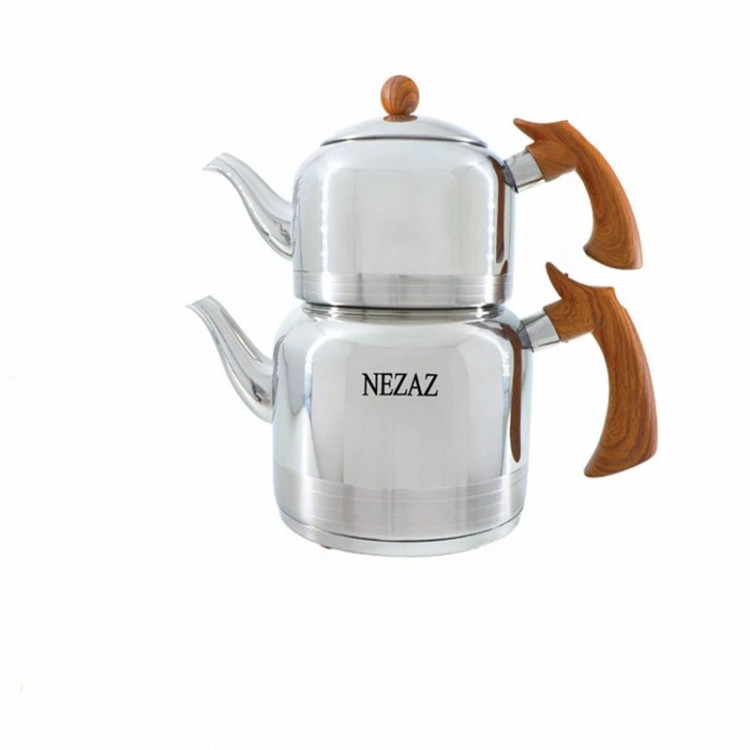 کتری قوری لوله دار 2.5 لیتری نزاز دسته طرح چوب کد 2307 با ضمانت 12 ماهه