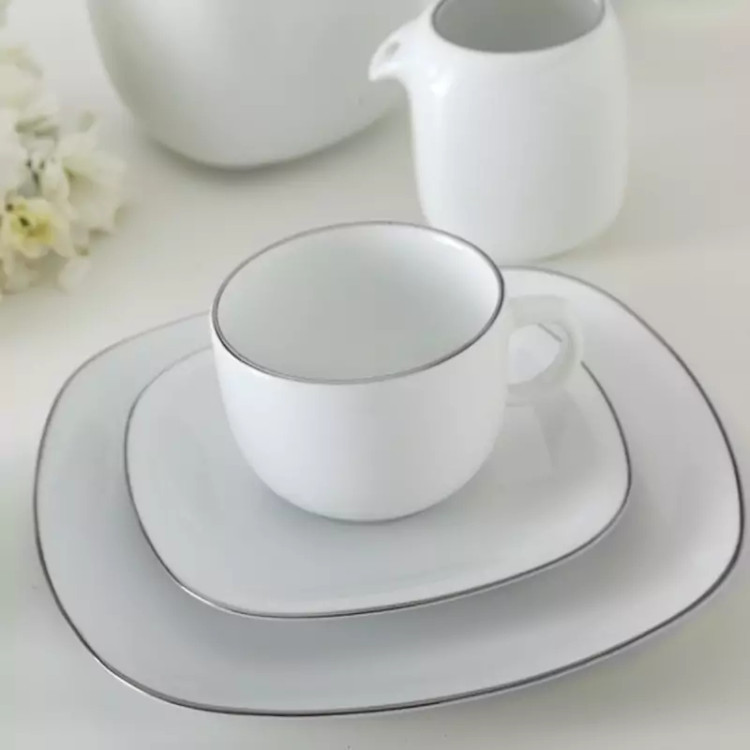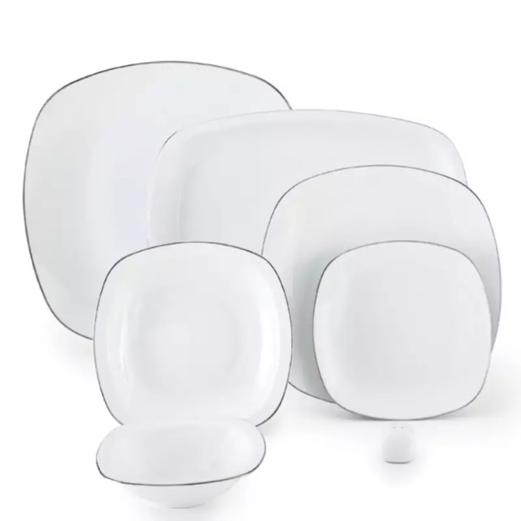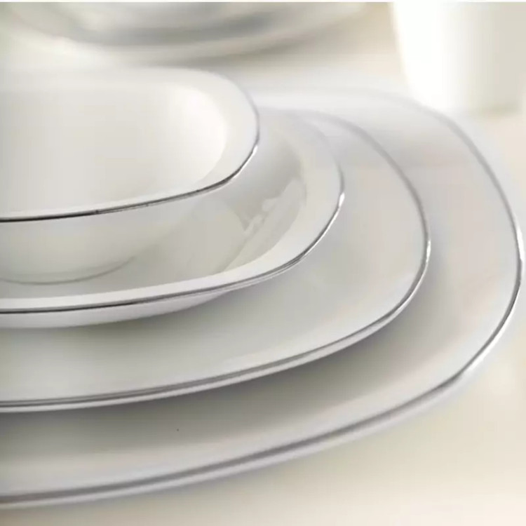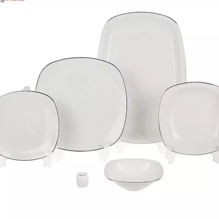 سرویس غذاخوری چینی زرین سمن سفید لب نقره (لب پلاتین) 27 پارچه مربع درجه 1 شش نفره