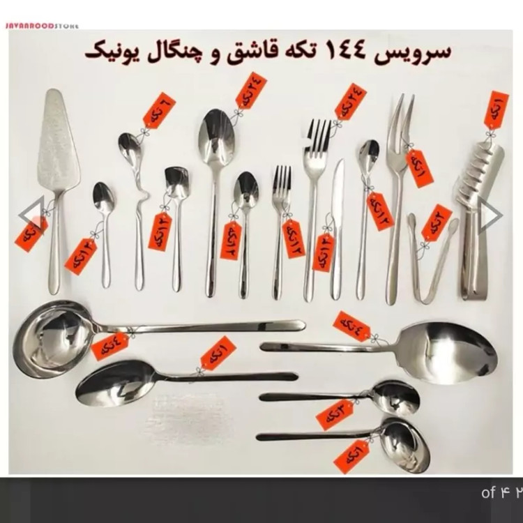 سرویس قاشق و چنگال 24 نفره 144 پارچه یونیک جرمنی طرح دونا Unique Dona ⚡قابل شست و شو درون ماشین ظرفشویی ⚡آهنربا نگیر:استیل (فولاد ضد زنگ) ⚡آلیاژ:18.10 بالاترین کیفیت ⚡ضخامت:3 میل ⚡این نوع سرویس از استیل ضد زنگ با کیفیت با درصد آلیاژ 18/10 نیز طراحی شده است و ضخامت قاشق و چنگال ها به اندازه سه میلی متر می باشد . استیلهایی که روی آنها ارقام 18٫10 درج شده است، از عالیترین کیفیت برخوردارند یونیک از این دسته می باشد. در ساخت آلیاژ استفاده شده برای این قاشق چنگال 18 درصد کروم و 10 درصد نیکل بهکار رفته است کروم سبب محافظت استیل در برابر خوردگی نیکل خاصیت ضد زنگ زدن را تقویت می کند قابل شست و شو با ماشین لباسشویی می باشد . ✅اقلام سرویس قاشق و چنگال یونیک ساده طرح دونا : 24 عدد قاشق و 24 عدد چنگال غذاخوری 12 عدد کارد و 12 عدد چنگال میوه خوری 12 عدد قاشق مرباخوری 12 عدد قاشق بستنی خوری 12 عدد قاشق شربت خوری 12 عدد قاشق چای خوری 6 عدد قاشق عسل خوری 3عدد قاشق سوپ خوری 4 عدد کفگیر 4 عدد ملاقه بزرگ 1 عدد قاشق روغن 1عدد سالاد گیر 1عدد چنگال مرغ 1عدد کفگیر کیک 1 عدد یخ گیر 1عدد ملاقه کوچک خورشت 1عدد ملاقه سس