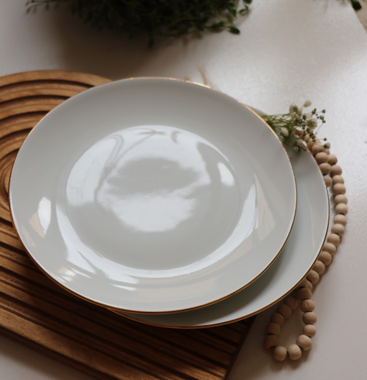 بشقاب میوه خوری تخت 19 سفید لب طلا لورین (6عدد) درجه ۱