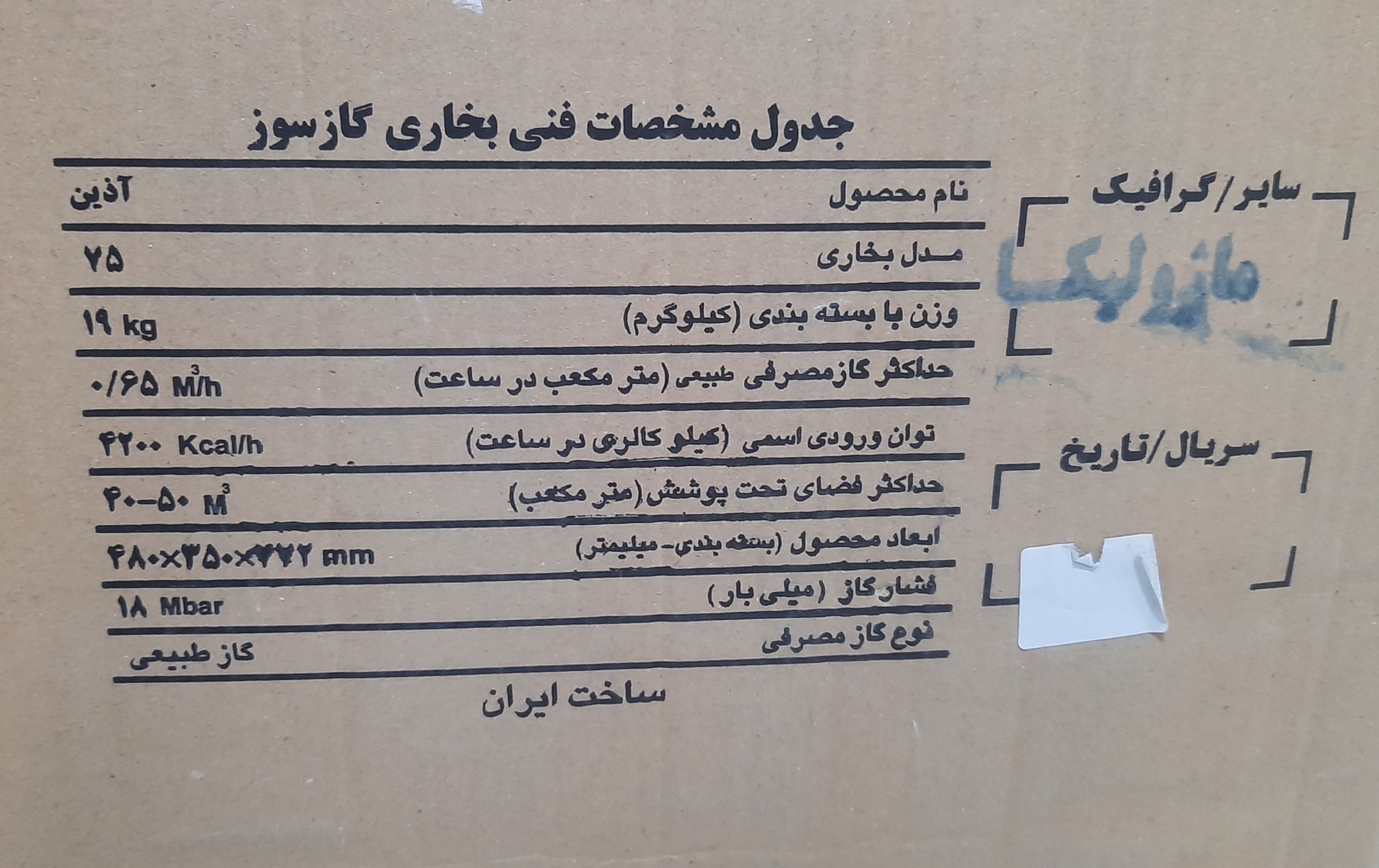 توان ورودی اسمی : ۴۲۰۰ کیلو کالری در ساعت