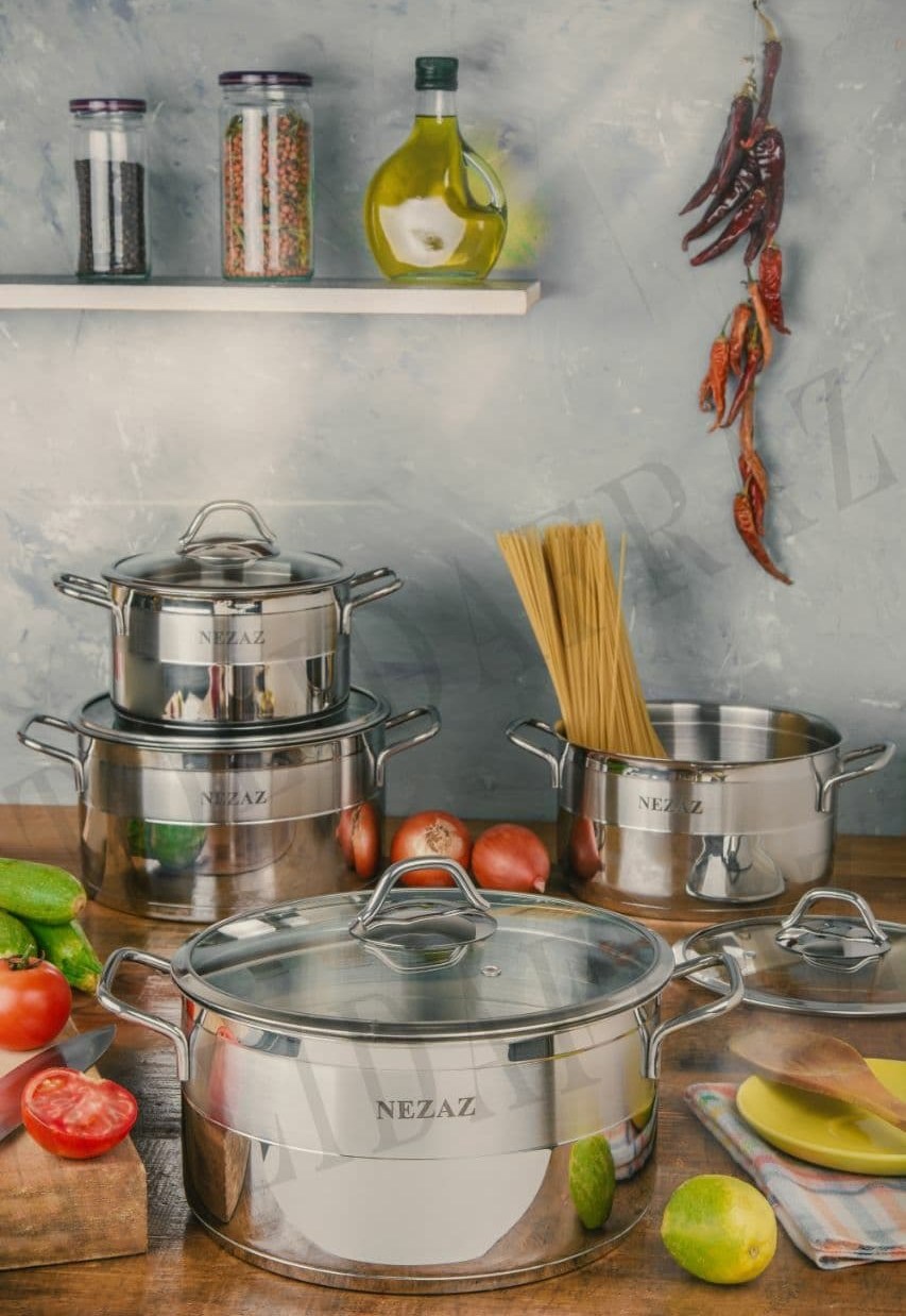 سرویس قابلمه استیل نزاز 8 پارچه کد 1040