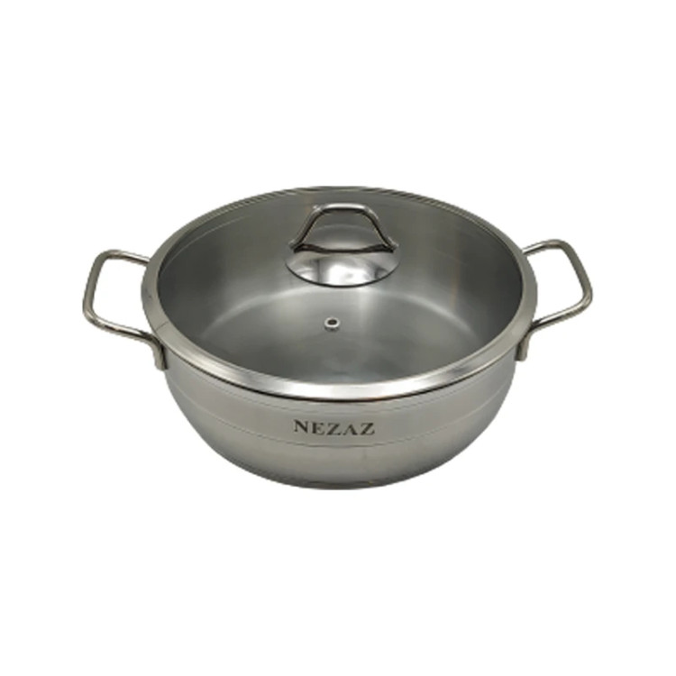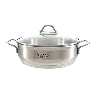 یکی از وسایل مهم در هر آشپزخانه ای، سرویس قابلمه و تابه می باشد. داشتن یک قابلمه و ماهیتابه مناسب با کیفیت مرغوب، لذت آشپری را دو چندان می نماید. تابه استیل نزاز سایز 20 یکی از تابه های موجود در بازار با ظاهری بسیار زیبا، درب پیرکس با کیفیت خوب می باشد. این محصول دارای کفه ی ضخیم و چدن می باشد.