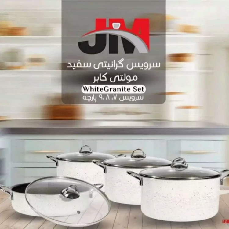 سرویس قابلمه گرانیتی جلامبین 8 پارچه کرم ضمانت 18 ماهه