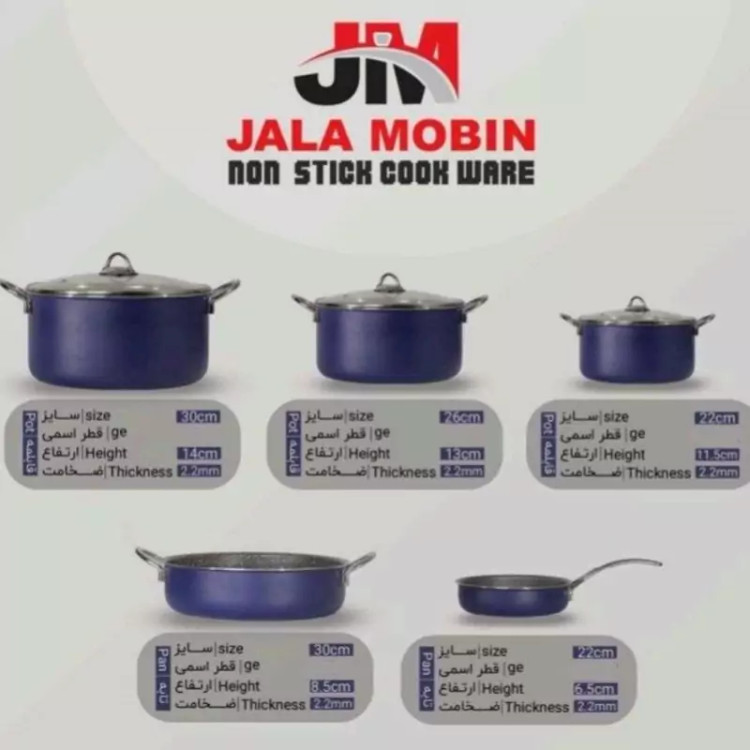 سایز قابلمه ها 22،26،30 سایز تابه تک دسته 22 با درب مشترک سایز تابه دو دسته 30 با درب مشترک
