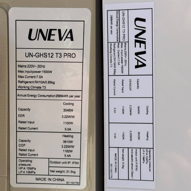 کولرگازی 12000 یونیوا پرو T3 مدل UN-GHS12 T3 PRO اسپیلت